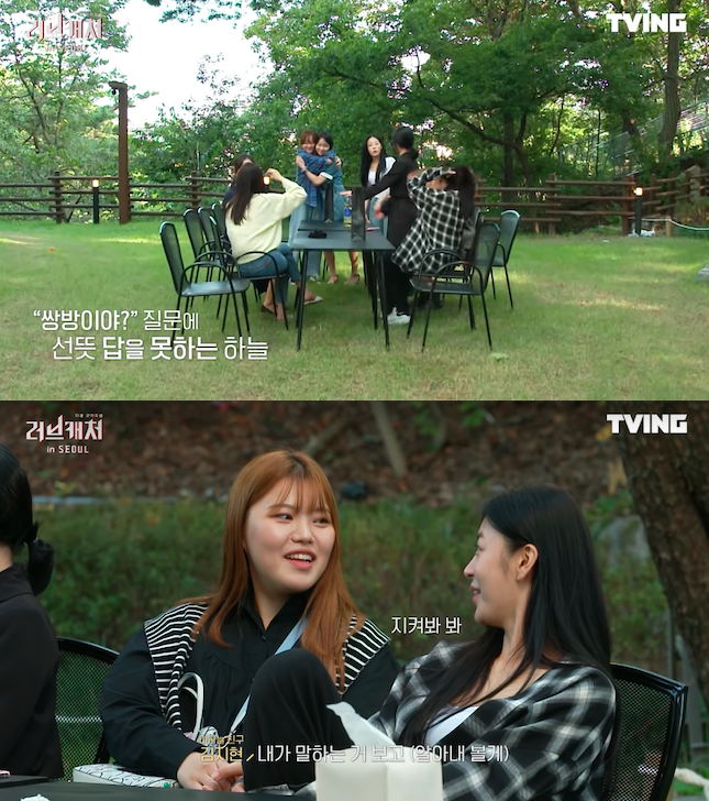 Meanwhile, Inseong tells her friend Yejin the guy she had a 'some' with already left, but it will end tomorrow. From the first day, she kept going forward with him. But got eliminated, such a pity... Now that Jungwoo is suddenly gone, she feels empty... Inseong wandering around like an isolated island earlier... sad...
